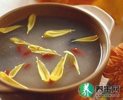做法:准备菊花10克,决明子10~15克,粳米50克,冰糖适量。先把决明子放人沙锅内炒至微有香气,取出,待冷后与菊花煎汁,去渣取汁,放入粳米煮粥。粥将熟时,加入冰糖食用。