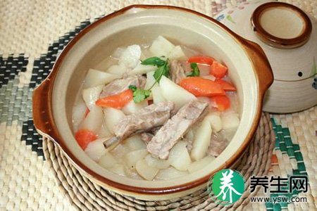 4、加入洗好的萝卜,继续炖大概50分钟左右,用筷子在萝卜上面戳一戳,如果萝卜软烂了,此道汤品就炖好了