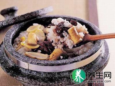 党参10克,糯米250克,白糖50克。将党参、大枣放在沙锅内,加水泡发后煎煮30分钟左右,捞出党参、大枣,药液备用。将糯米淘洗干净,放在大瓷碗中,加水适量,蒸熟后,扣在盘中,将党参、大枣摆在糯米饭上,药液加白糖,煎成浓汁后浇在枣饭上即成。可做早餐食用。此米饭具有健脾益气之功效,适用于体虚气弱、乏力倦怠、心悸失眠、食欲不振、便溏浮肿等。