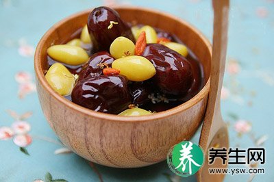 做法:将500克红枣煮熟,留少量水,加入500克阿胶,使其溶化粘在枣上,食用红枣。