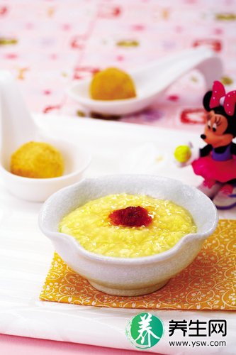 【制作】先以小米煮粥,取汁,再打入鸡蛋,稍煮。