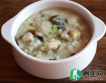 黑豆牡蛎粥:取牡蛎20个,葱半根,黑豆、白米各适量,食盐、麻油少许。将牡蛎、葱洗净;黑豆洗净,泡水一夜;白米洗净,泡水30分钟备用。将黑豆、白米放入锅中,加入适量水煮成粥,再加入牡蛎、盐煮熟,最后撒葱末、淋麻油即可食用。黑豆的美容功效极佳,不仅能排除体肉多余的水分和油脂而达到瘦身的效果,还具有滋润皮肤、抗衰老和乌发的功效。