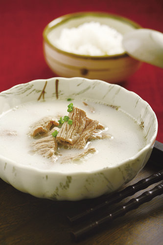 2、把全部用料放入瓦煲内,加水适量,武火煮沸后,文火煲约2~3小时。