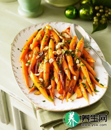 胡萝卜——东方小人参 胡萝卜是一种质脆味美、营养丰富的家常蔬菜,有“东方小人参”的美誉。胡萝卜生食或熟食均可,还可腌制、酱渍。 现代科学认为,胡萝卜含蛋白质、脂肪、糖类、粗纤维、钙、磷、铁、硫胺素、核黄素、尼克酸、抗坏血酸、挥发油等成分。胡萝卜中多种胡萝卜素和类胡萝卜素是维生素A的来源,胡萝卜素含量丰富,而且在高温下也很少破坏,并容易被人体吸收,进而转变成维生素A,所以能治疗因缺乏维生素A而引起的夜盲症;对于缺乏维生素A的眼干燥症和小儿软骨病,也有辅助治疗作用。胡萝卜素还有维护上皮细胞的正常功能、防治呼吸道感染、促进人体生长发育及参与视紫红质合成等重要功效。