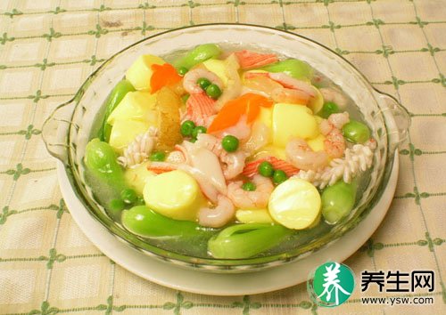 配料: 鸡肉脯50克,豌豆50克,西红柿1个,鸡蛋清1个,牛奶25克,淀粉25克,料酒、食盐、味精、高汤、麻油适量。