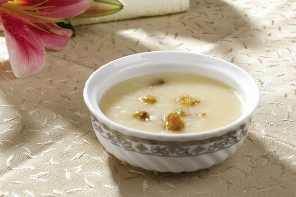 小零嘴:糯米百合甜杏粥。糯米100克,百合30克,甜杏仁20克洗净同煮为粥。