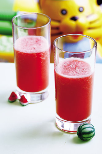 2.将西瓜用勺子呙入榨汁机中榨出汁;
