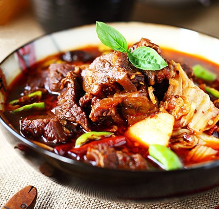 食材:牛腩500g、辣白菜100g、油适量、盐适量、香料适量、料酒适量、干辣椒适量