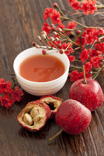 配方是枸杞子100克,女贞子50克,仙灵脾50克制成醪糟水果。