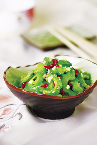 苦瓜苦寒,性收敛,寒凝使血行减慢。所以,经期的女性应少吃苦瓜,以免影响月经的顺畅。另外,苦瓜中的“苦瓜素”会使子宫收缩,含量虽然不多,孕妇吃时仍需适量,别吃得过多。