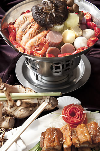 4、将牛毛肚、牛肝、牛腰、黄牛背柳肉、新鲜蔬菜放入火锅卤汁中烫食。