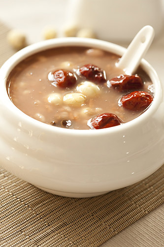 2、苹果莲子银耳粥:苹果一两个切小块、莲子三十颗、银耳冰糖少量一起加入清水炖熟。