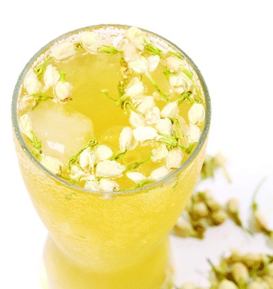 杏仁、菊花各10克,加水煎煮取汁,代茶饮。功能清热润肺,疏风止咳。用于干咳痰少,发热,头痛。