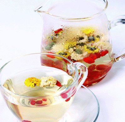 鲜金银花200克,经蒸馏后收集蒸馏液,即可饮用。功能清热解毒,消暑止渴。用于暑热口渴,热毒疮疖。