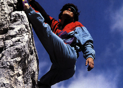 身体背向跳落方向,屈体下蹲,两手抠住崖壁边缘,身体下移,两腿依次下伸,使身体悬垂,并略向左(右)移,左(右)手下移扶壁,手脚同时推蹬崖壁转身跳下,脚掌先着地,随着屈膝缓冲。