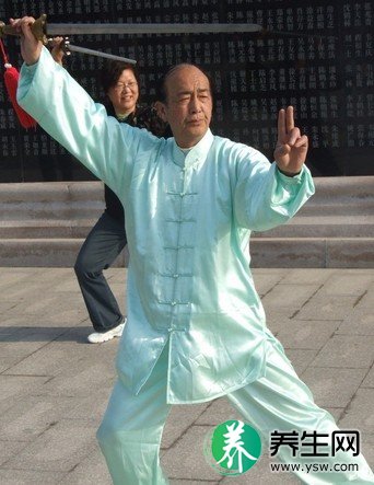 ③剑指配台:演练太极剑时,要求明白剑提的作用、动作路线,剑指与剑一开一合、配合默契、自然协调;