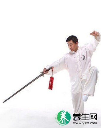 演练太极剑与太极拳一样,身体不能上下起伏,更不能站直练。年纪大的人可以资式高些,但步型要符合要求。