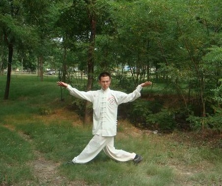 双脚与肩同宽,身体放松直立,面带微笑,左手空拳放于右手掌之上,左右手拇指上下重叠,置于小腹下丹田处,自然呼吸,默念以排除杂念,安定心神。左拳为圆象天,右掌为方象地,左拳右掌相合呈地天“泰卦手印”。