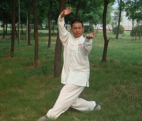2、 八卦掌站立时,前脚的膝关节与前脚脚后根垂直,身体后背、胯部与后脚后根垂直,这样转掌时身体才能保持中正,才能随时起脚打击对手。