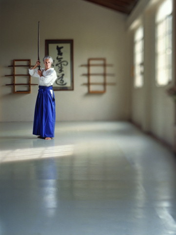 推开高大的殿门,映入眼帘的是几个安静地忙碌着的人,习练者陆续到达,但是殿内却始终安静,没有人高声说话。习练的时间到了,换好道服的练习者走进一个较小的侧殿。初看上去,合气道与柔道并无两样,一样的白色道服,一样的白色或黑色腰带,不同的是,开始习练前的礼仪颇为讲究。