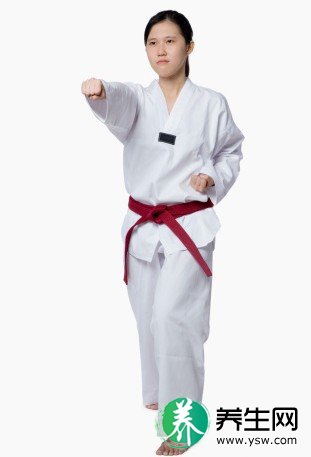 3.后踢:以左脚掌为轴内旋约90度,上身旋转重心移到右脚,屈膝收腿直线踢出,重心前移落下;
