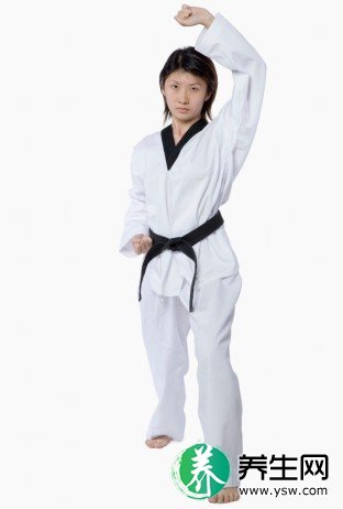 A.练习者依照主裁判“立正”“敬礼”的口令,向陪审席行标准礼,标准礼为鞠躬的自然姿势,腰部前倾15度,头部下倾45度,两手握拳贴于双腿内侧;