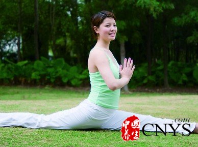 从上一式起,向前曲体(如果有必要,手可以扶着大腿),使上半身与大腿相合,直到你的手够到地面,放松45到60秒,膝盖可以是直的,也可以是弯的,这取决于你的舒适程度。