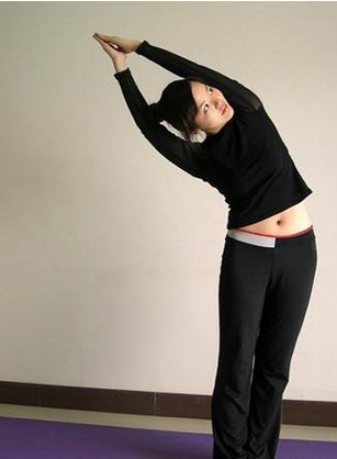 2、从嘴巴以及鼻子慢慢呼气,两手稍微施力按压腹部,令空气充分呼出,脸部微微仰起,但注意后腰不要往上浮起。