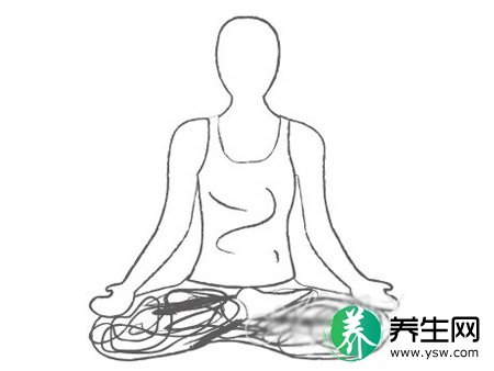 步骤1、盘坐姿势,脊柱伸直,两手掌心向上放在膝盖上。