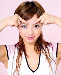 按摩方法:循着眼眶骨,由双眼内上眼角往外,轻轻按压眉毛内侧的缵竹穴、眼睛内侧的睛明穴、眼睛下缘落泪处的承泣穴、额头两侧的太阳穴等,直到感觉酸胀即可,能改善眼部的血液循环,并且刺激整个眼部周遭肌肉,舒缓不适。