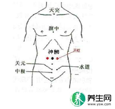 【穴位找法】:肚脐正中左右各外开2寸,就是穴位。
