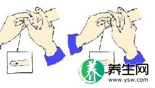①补肺经:在无名指面上旋推,见中图,约补200~400次。