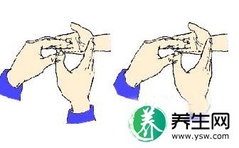 ②清肾经:自小指尖向指根方向直推,见右图,清100~200次。