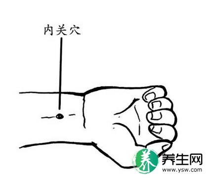 内关穴:内关穴(前臂正中,腕横纹上2寸处)是治疗胃肠疾病的主要穴位之一,按揉此穴对治疗胃痛、恶心、呕吐等症有不错的疗效。