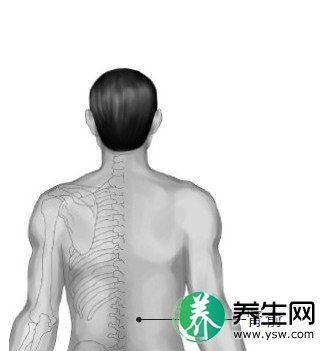 背部,在第11胸椎棘突下,左右旁开两指宽(1.5寸)处。