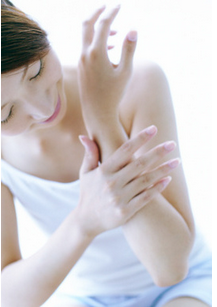 1、手臂稍微弯曲,另一手从指尖往上臂方向,直线式按压。