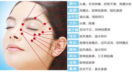四白穴(在面部,瞳孔直下,当眶下孔凹陷处)