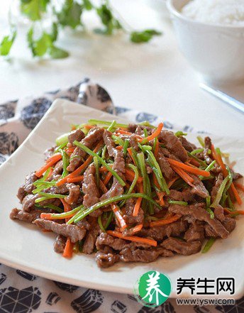 制法: 胡萝卜切丝,猪肉切丝后加盐、黄酒拌匀,陈皮浸泡至软切丝。先炒胡萝卜至成熟后出锅,再用油炒肉丝、陈皮3分钟,加入胡萝卜丝、少许盐、黄酒同炒至干,加水少量焖烧3~5分钟,撤入香葱即成。