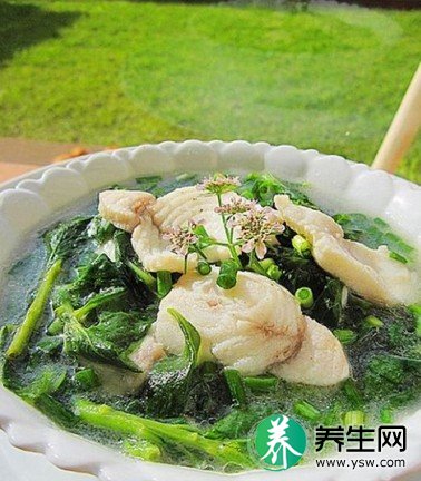 做法:将枸杞枝扎成一团,加适量盐、姜丝、芡粉;油拌匀,先将枸杞枝扎成一团,加适量清水,文火煮沸约10分钟,下鱼肉稍煮至刚熟,调味即成。