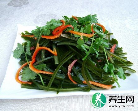 海带50克,洗净、切丝,用醋、盐适量调拌。分2-3次吃完,每日1次,用于冠心病。