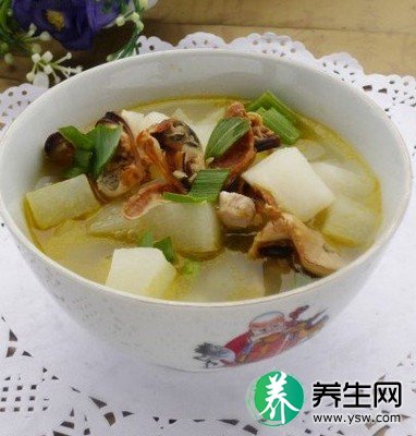 猪瘦肉250克,洗净切块;淡菜100克,洗净。同放一锅内加水及少许黄酒、盐,煮至肉酥佐餐。淡菜性温,味甘咸,温肾散寒,为补虚养肾之要药。猪瘦肉为甘平之品,补肾益精。