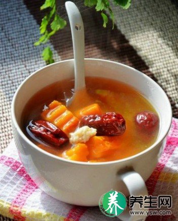 红枣红糖南瓜:红枣(去核)20枚,鲜南瓜约500克,红糖少许。南瓜去皮切块,与红枣一起加水煮烂,放入红糖调味后即可取用。食用量可根据病人的具体情况而定。