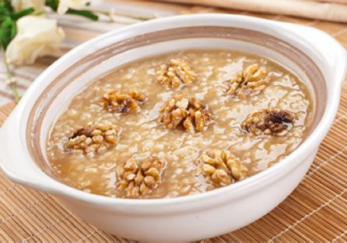 养颜食谱四:核桃松仁粟米羹——美容又健胸。