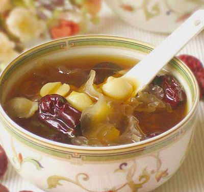 原料:100克干桂圆肉(补血)、10克西洋参片(补气)、10克绵白糖。