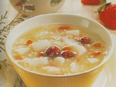 6、桃仁粥:桃仁15克粳米150克。先将桃仁捣烂如泥,加水研汁,去渣,再入粳米煮粥,每日1剂。功用:活血祛瘀,通络止痛。适用于瘀血痰浊痹阻型痛风。