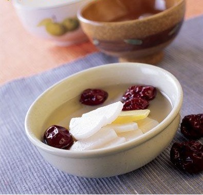 大枣10个、生姜5片、红糖适量,每晚煎茶喝。对改善手脚冰凉的疗效颇佳。
