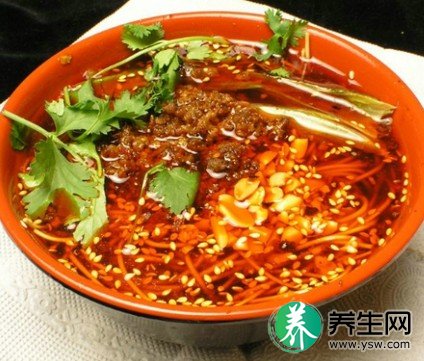 村料:面条200克,猪肉馅400克,芽菜100克,大葱末25克,姜末10克,蒜茸10克,辣椒面1.5克,芝麻酱10克,油菜心1棵,香菜少许。
